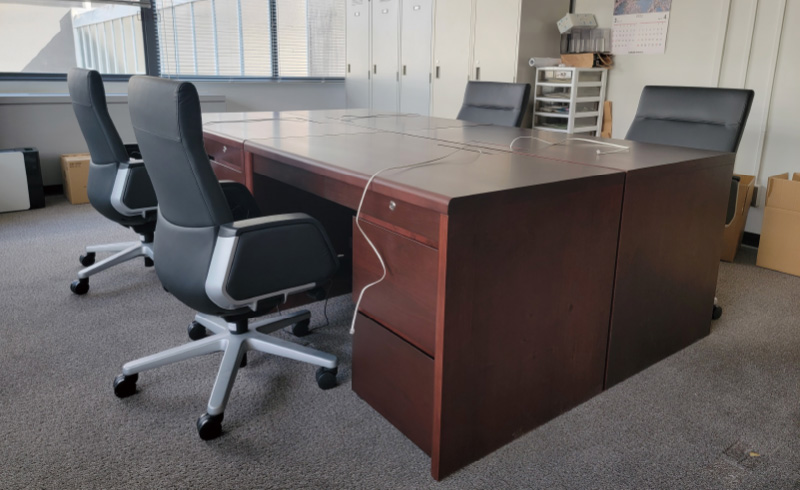 老朽化した議員控室の什器更新にあたり、広島県産ヒノキ材を活用した事務デスクを製作しました。広島県産材を最も多く活用しているとの理由で、弊社製品が採択されました。